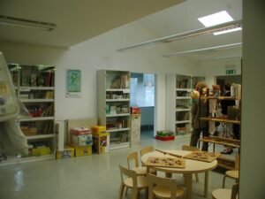 Igrače so prosto dostopne in zložene v omarah. Igrače, ki so primerne za eno starosto skupino so zložene skupaj. Tako imamo sklope: 1+, 2+, 3+, 4+, matematika, jezik, konstruktorji, miselne igre, družabne igre, lutke.