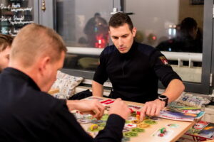 Razvijamo igre, ja. To je res najlepši del našega posla. Po pravici povedano – navdiha je vedno dovolj. Še preveč. Zelo veliko dobrih idej še »leži v predalu«. Največkrat črpamo iz aktualnih tematik, za katere vemo, da bi jih preko iger lahko približali ciljni skupini. Trenutno je v ospredju skrb za zdravje, pa tudi okoljevarstvene teme so vedno aktualne. Naročniki pa seveda prihajajo do nas s svojimi temami, ki so po navadi zelo specifične a zato še bolj zanimive za nas. Veliko smo se ukvarjali s finančnim opismenjevanjem, osveščanjem o pravični trgovini, celo notarske storitve smo pretvorili v igro. Tu res ni omejitve, verjamemo da ni teme, ki je ne bi mogli umestiti v družabno igro. 😊