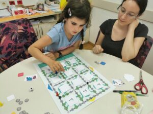 Pri razvoju sodelujemo z najbolj zahtevnimi strokovnjaki – z otroci! 😊 Igre namreč vedno preizkušamo tudi s ciljno skupino. Tako imamo vzpostavljene skupine za testiranje v družinskih krogih, kjer naše igre preizkušajo otroci skupaj s starši, sodelujemo z vrtci in šolami, kamor hodimo testirat naše igre, preizkušajo jih vzgojitelji in učitelji, za strokovno mnenje včasih zaprosimo tudi profesorje iz Pedagoške fakultete v Ljubljani. Ampak kot rečeno, brez pomoči otrok, ne bi mogli. Velikokrat se nam zdi, da smo pripravili odlično igralno mehaniko, pa se pri otrocih sploh ne obnese. Pa spet spreminjamo. Sploh pa imajo otroci nemalokrat tudi sami odlične ideje, kako bi naredili igro bolj zabavno in če se le da, kakšne ideje tudi vključimo v igro.